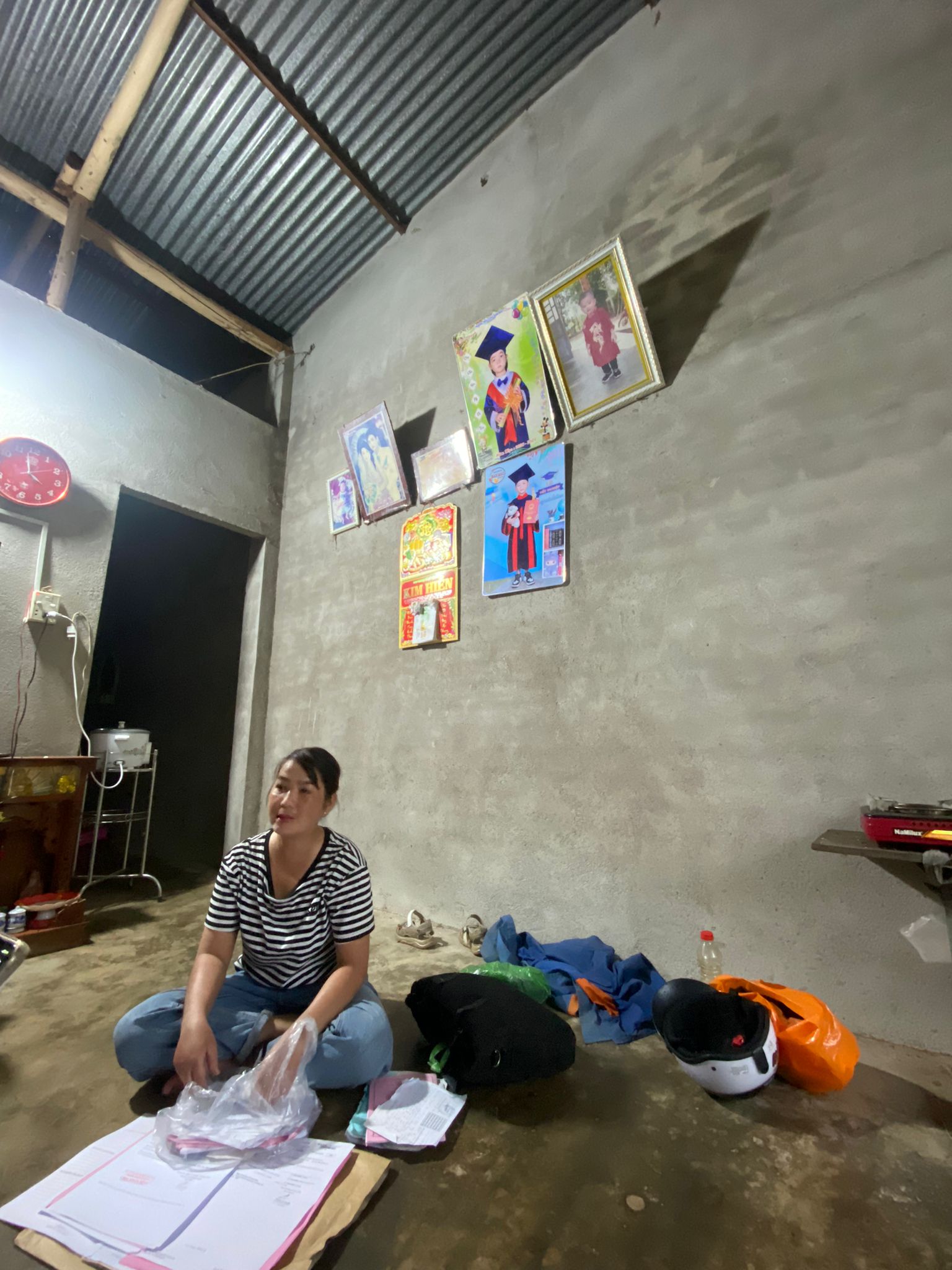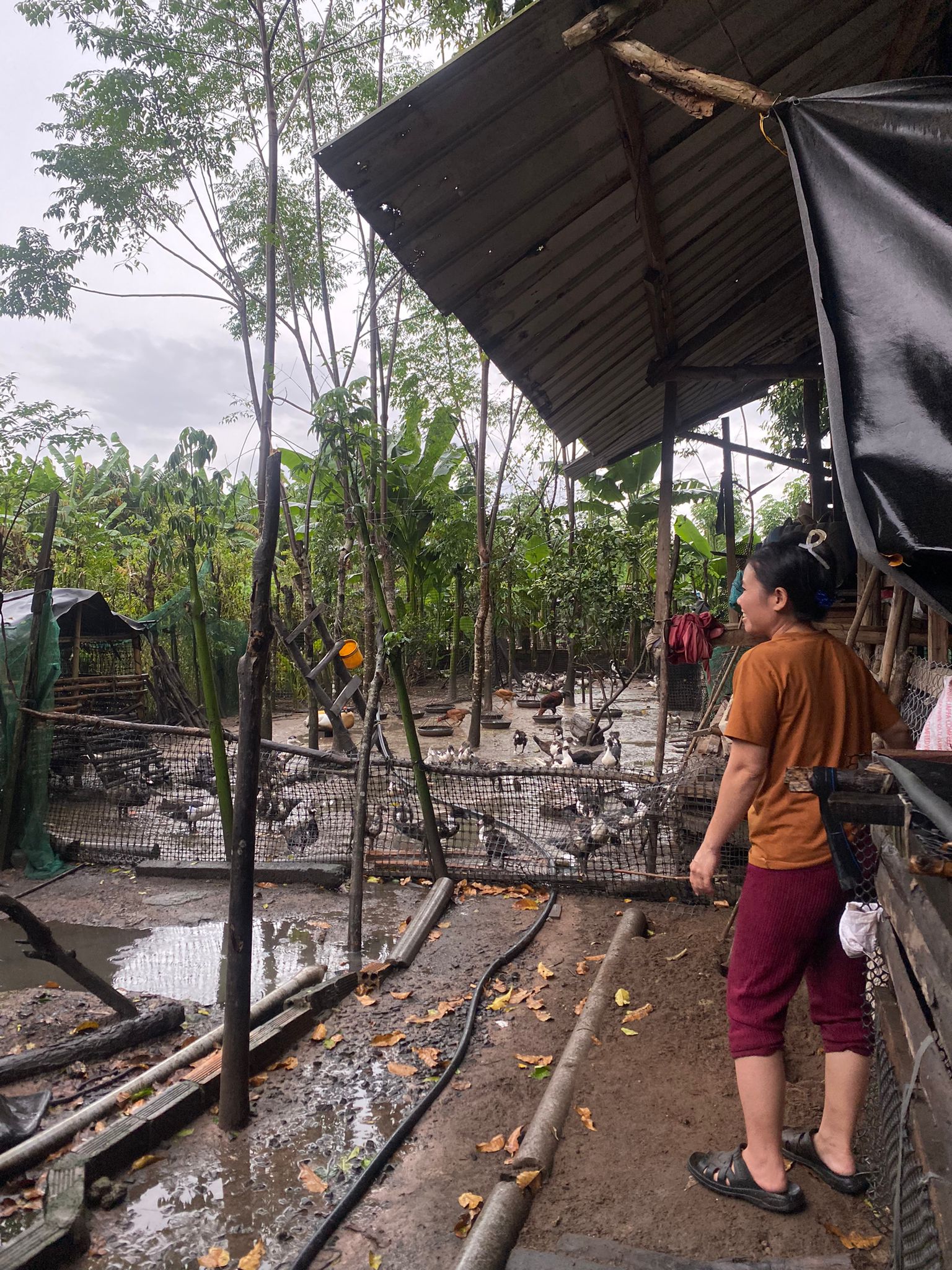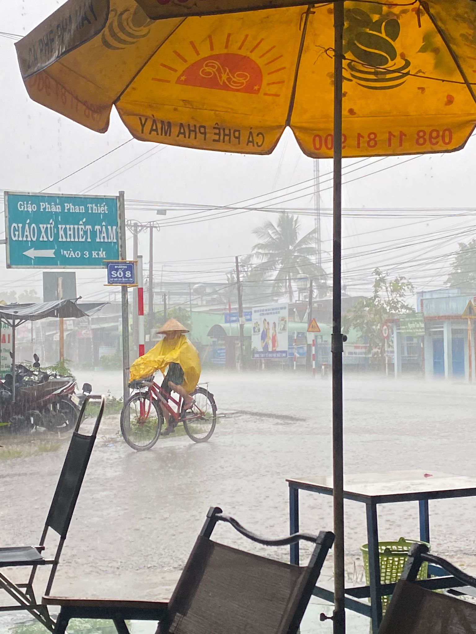 In the afternoon, the weather completely changed. Heavy rain poured over Đức Linh, part of a tropical storm hitting the center of the country. Even so, we went to visit families, and I quickly found myself soaked despite my raincoat.
