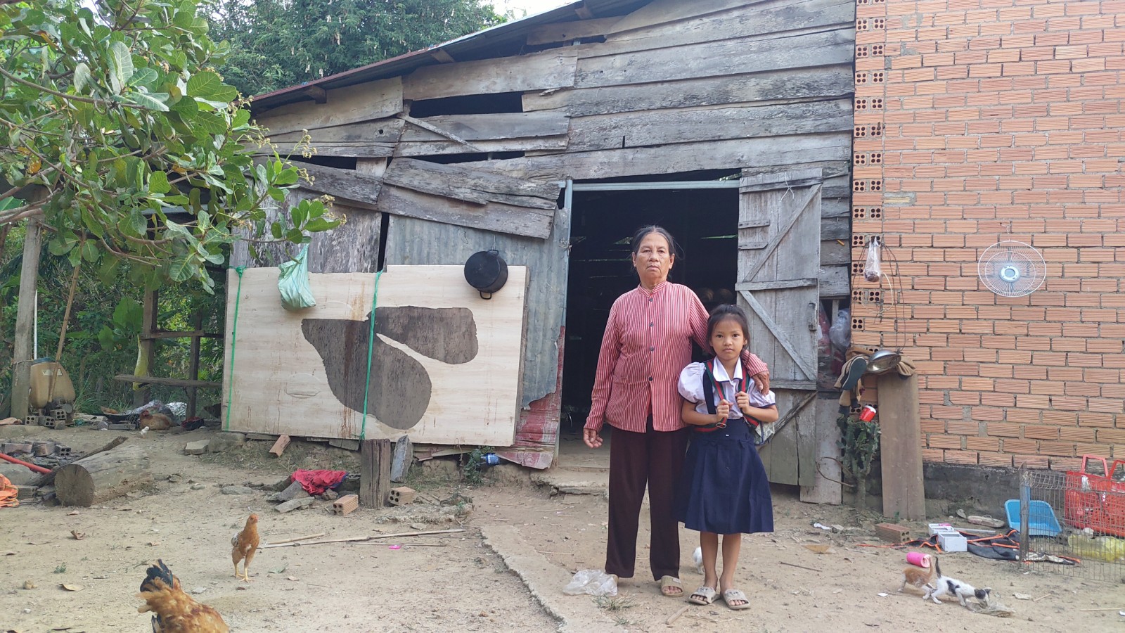 After her parents divorced, Tien's mother took her two brothers to her grandparents' house and they gave the family 1 sao of rice field to grow rice.Every day, her mother sells scraps and bottles to earn income so her children can go to school.But with time, the recycling business was slow, so the mother and child went to other people's gardens to buy banana leaves and then went to sell them.The mother and child also grow a banana garden at home and ask for an additional piece of empty land in front of the house to plant bananas.